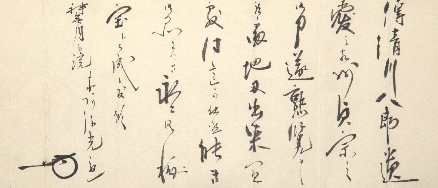 Den Kiyokawa Hachirō iai no Sōshū Sadamune kore, o-katana tsui ni jukuran mōshisōrō dokoro jiba deki yoroshiku dōi no tsukamatsurubeku sōrō yoki, o-shina nitsuki nagai go-hihō to nasaretaku sōrō.