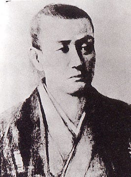 Kiyokawa Hachirō (清川八郎, 1830–1863) was quite a figure in the turbulent times that ushered in the end of the Tokugawa regime and the feudal system. Kiyokawa was born as the eldest son of Saitō Hidetoshi (齋藤豪寿, born 1810) in Shōnai in Dewa province (present-day Yamagata Prefecture). Hidetoshi was not only a Gōshi (郷士), a Samurai living in the countryside tasked with administering a village, thus allowed to wear a sword, but also a fairly wealthy sake brewer, and Kiyokawa’s mother, Kiyo (亀代), was coming from money as well, that is, from the wealthy merchant family Mitsui (三井) from Tsuruoka. Aside from running his sake business, Hidetoshi was also a man of culture well versed in history, literature, poetry, and calligraphy, and also had a keen interest in swords. At age ten, Kiyokawa, then named Saitō Genji (斎藤元司), began learning from local scholars, but was eventually expelled for misbehaving. Kiyokawa then received his first training in swordsmanship at the age of 17 from local swordsman Itō Yatōji (伊藤弥藤治), and was also taught in the same year by Fujimoto Tesseki (藤本鉄石, 1816–1863), who had stayed in Kiyokawa and who later became a leader of the pro-Emperor Tenchūgumi (天誅組) group of Samurai and Rōnin. It is believed that it was this encounter with Tesseki that ignited in the teenager Genji a desire to study in Edo, which he put into action a year later.